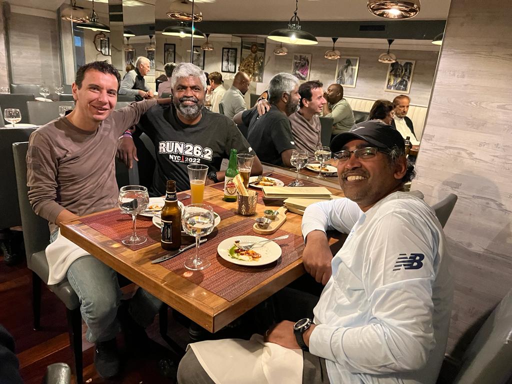 You get a great goodie bag and raincoat/fleece blanket. We took the train and came back to the room. The awesome shower. Roberto, a peer of Muthu, had come to run along with him and joined for the dinner at Chozan. The restaurant’s name was south Indian, but the food was not bad. Def not the south Indian food variety. But all good. I had a complete meal. Burped my way back to the room.