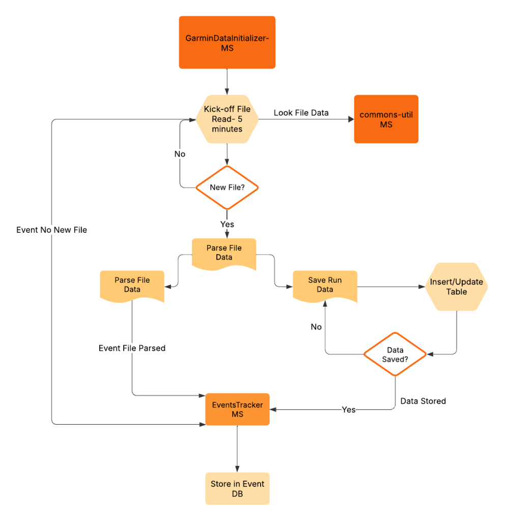 Here is the code for GarminDataInitializer. The service kicks off every 5 minutes. It checks if there is a new data file to process. It uses the spring scheduler for auto kick-off.